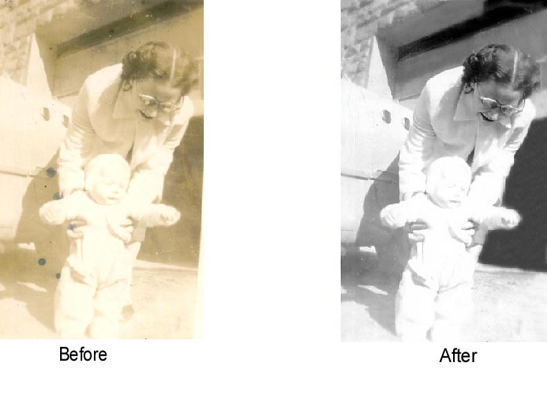 | LIGHT PHOTO RESTORATION Don't forget to check out Extreme and Heavy Restoration samples. Click on the images shown on this page to get an enlarged before and after view of the changes. Please note: These photos are lower quality versions of the originals, which may differ slightly, in order to make them load in your browser window as quickly as possible. Also, every monitor displays color differently, which may not reflect the actual colors of the restored photographs. |